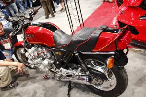 SNOW PERFORMANCEという補機類を取り扱うメーカーのブースに飾られたのは、ホンダが1978年に発表・発売したCBX1000。1047ccの空冷4ストロークDOHC、なんと直列6気筒エンジンを搭載していたバイクです。