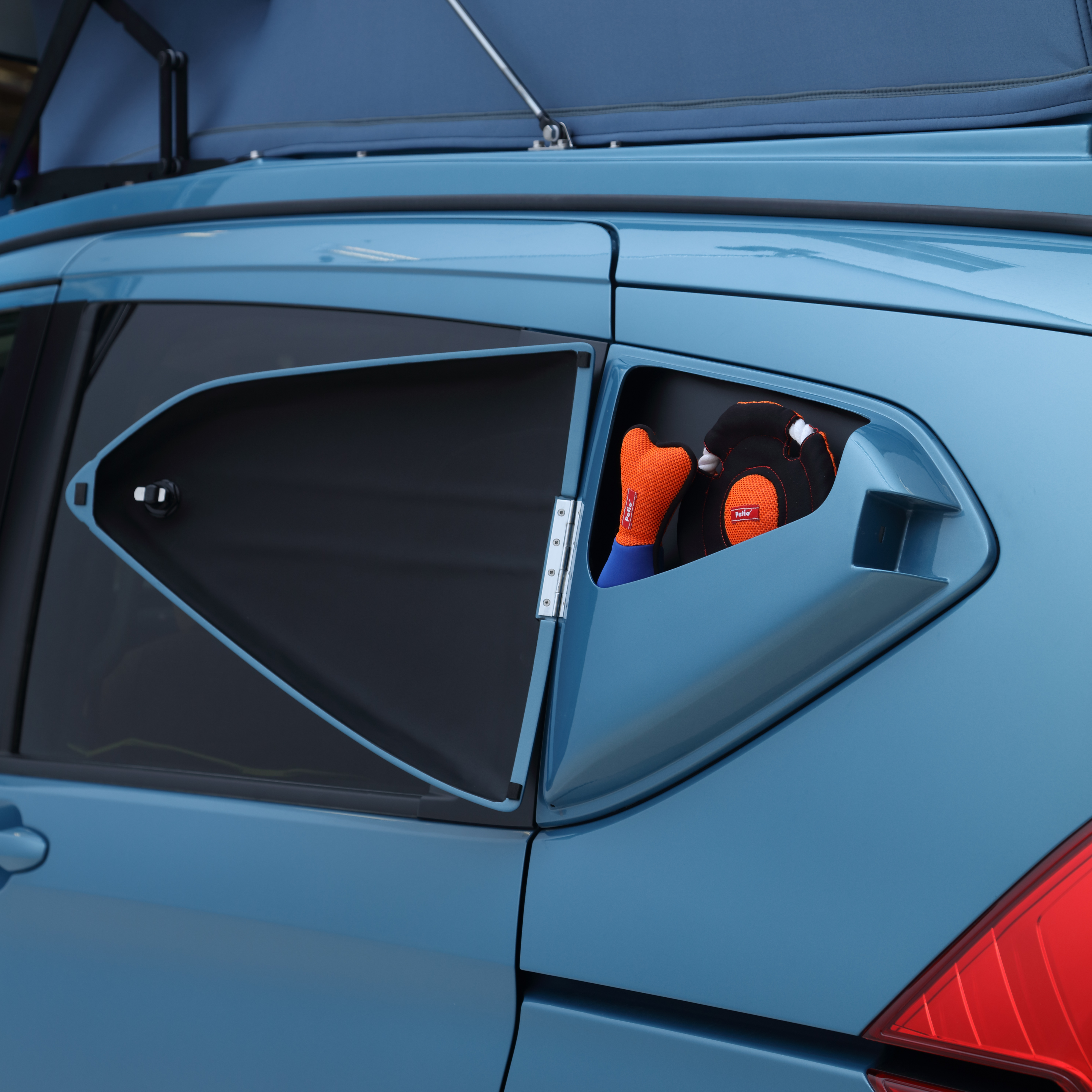 これら特別な専用装備のなかで特に注目なのが、「クオーターウィンドウボックス」だ。愛犬の排泄物など汚れものなどを入れておく場所が欲しいというオーナーの声に応えるべく、ホワイトハウスがデザインしたもの。スライドドアと干渉しない絶妙なサイズで、スタイリッシュに仕上げている。