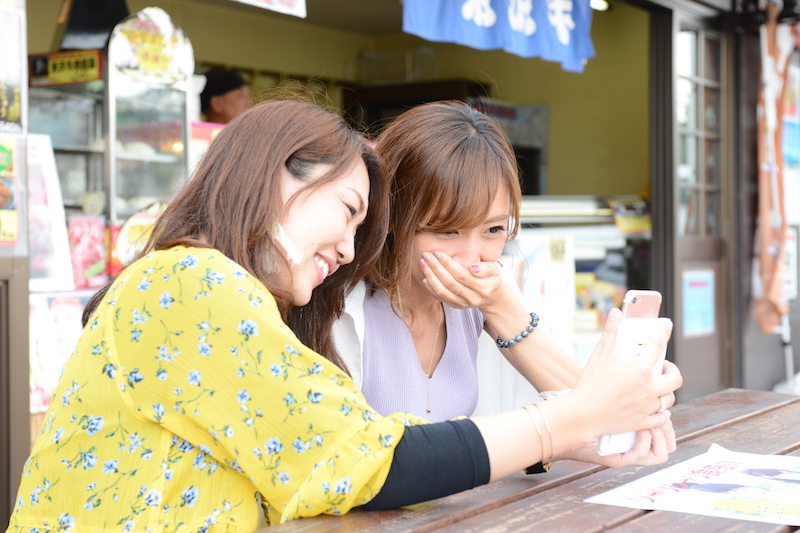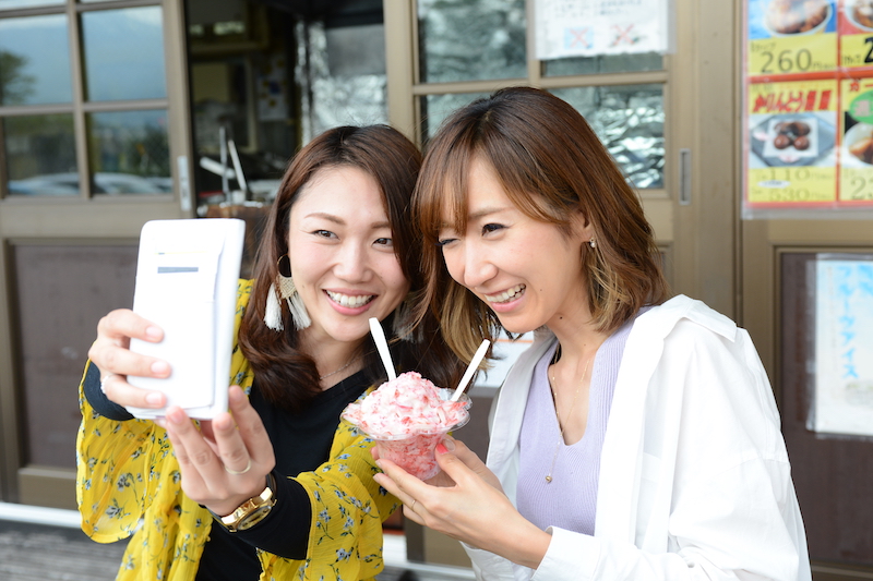 その後は東北自動車道を南下し、安達太良サービスエリアでひと休み。リアちゃん&あやちゃんの2人は女子力をアピールすべく(!?)、スイーツとの写真とか撮っちゃったりして。