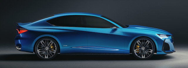 このタイプSコンセプトは、アキュラのスポーツセダンであるTLXの次期モデルのデザインスタディとも言われており、現行モデルよりさらにロー&ワイドを強調したフォルムが特徴。真横からのフォルムを見ると、たしかに4枚ドアを前提としたデザインとなっている。