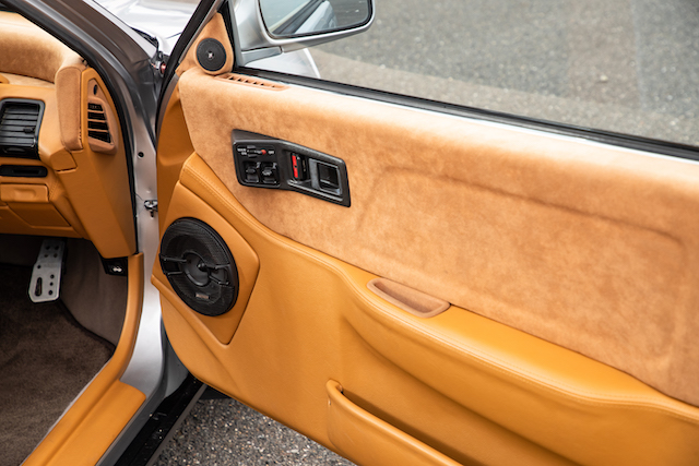 岡さん自身が担当したインテリアは、キャメルカラーのレザーとスエード調素材を贅沢に使用。インパネやセンターコンソール、メーターフードのほか、ドアトリムやルーフライナー、カーペットもすべて張り替えて新車以上のクオリティと上質感を実現している。