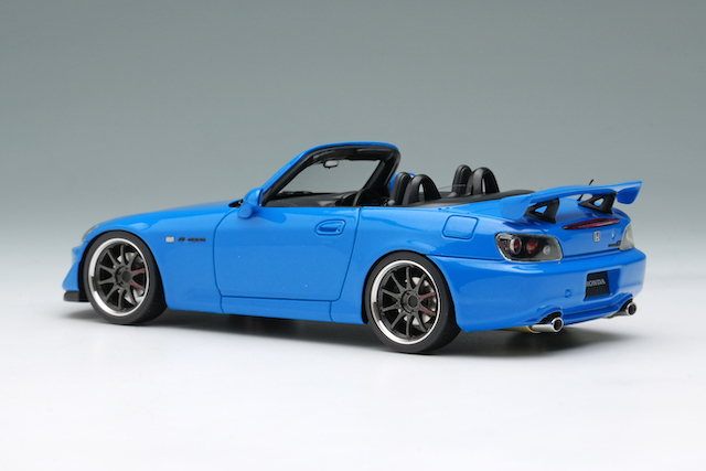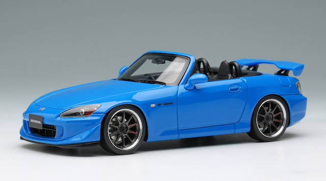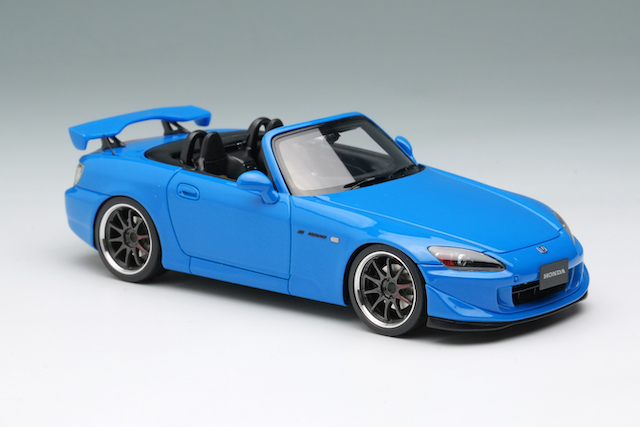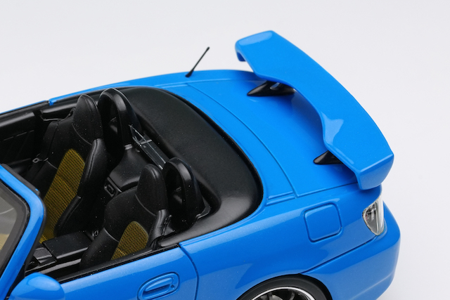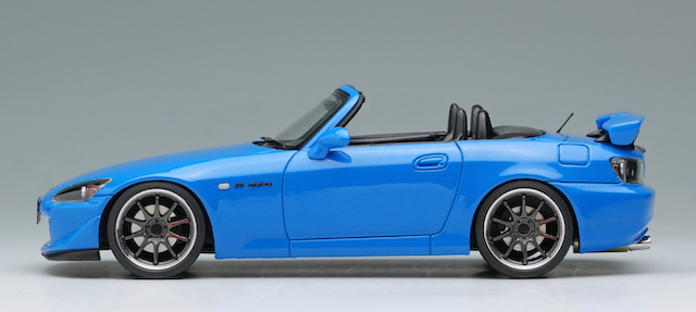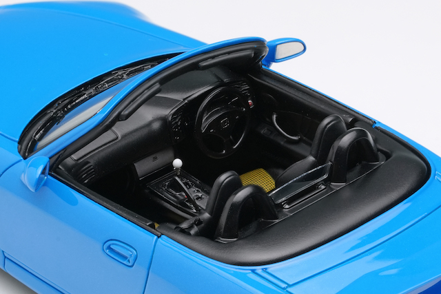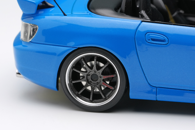 今回は旧来のファクトリーストック仕様に加えて、RAYSのCE28SLホイールを装着し、車高を軽く落とした、いかにも”速く走りそう”な、S2000タイプSをモデル化している。実車でも定番のスタイル故に、「まるで自分のクルマのようだ」あるいは理想の状態だと感じる方も少なくないだろう。