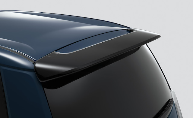 ガソリン車のN-ONE用純正アクセサリーとしても人気の「テールゲートスポイラー」だが、電気自動車のN-ONE e:でも定番のアイテム。ガソリン車用純正アクセサリーのテールゲートスポイラーより大型の形状となっており、スポーティグレードのN-ONE RS譲りのフォルムとなっている。