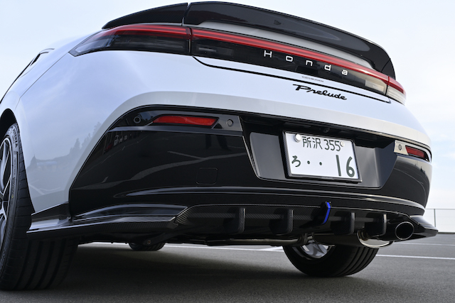 新型プレリュードに向けて無限では様々なアフターパーツを設定しているが、この「スペック3」はカーボン素材を使用したエアロパーツとマフラーで構成されるボディキット。
