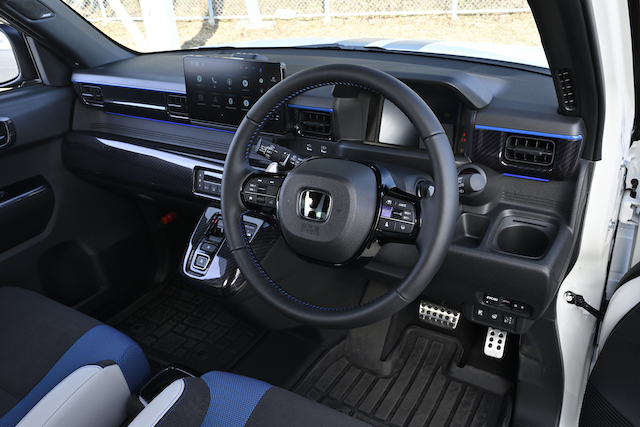 ベース車両の「Super ONE」が正式発表前であるため、装着されているパーツの詳細もまだ明かされない製品がほとんどであり、インパネのメーター内にも一部表示に目隠しがされた状態での取材となった。今回は無限が手がけた車両も同時に撮影することができたため、両車を見比べることでホンダアクセスと無限のテイストの違いを想像することができた。