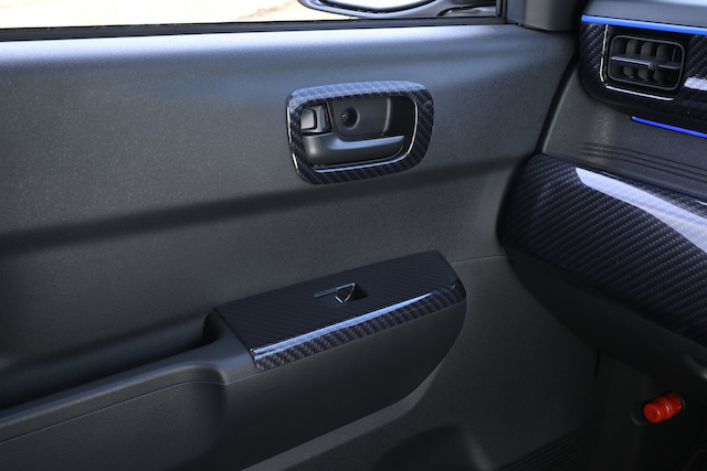 そのほかブラック塗装された15インチのアルミホイールや、中央部分が窪んだテールゲートスポイラーを装着。車体前後のブラックエンブレムやドアバイザーといった定番アイテムに加え、ボンネットにはおそらくN-ONE用純正アクセサリーとして設定されているストライプが装着されている。