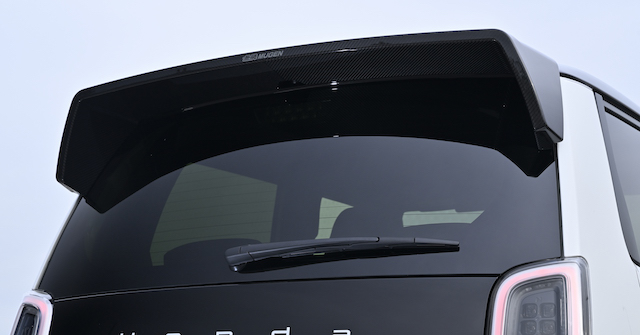 なんといっても大迫力なのは、車両の前後に装着された大型オーバーフェンダーだ。ホンダアクセスの車両は曲線基調のデザインであるのに対し、無限は角張った造形を採用している。