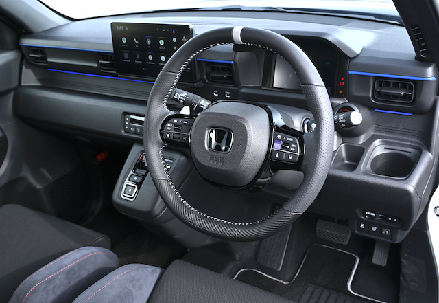 いっぽうインテリアに目を向けると、リム部分の下部にMUGENロゴが刻まれたスポーツステアリングや、スポーツマット、スポーツペダルなどを装着。これらはN-ONE e:にも流用ができそうにも見え、今後の展開に期待したい製品だ。