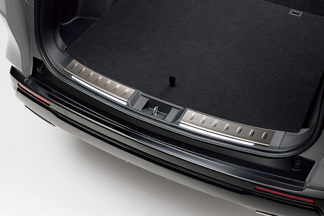 荷室開口部に装着する「リアパネルライニングカバーイルミネーション」は、テールゲートの開閉に連動してLEDイルミネーションが点灯。ステンレス素材を採用したことにより、荷物の出し入れによって起こり得るリアパネルライニングへキズがつくことも防いでくれる。