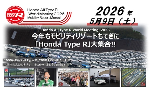 そんなホンダ車ファンならば絶対に見逃せないイベント「Honda All Type R World Meeting」が、2026年も開催される。イベントの参加資格はシンプルで、参加車種はホンダの「タイプR」シリーズであること。もちろんNSX-RもOKだ。今年2026年のイベントはさらにスケールアップし、30を超えるメーカー&ショップ出展ブースや、600台を超える参加車(者)が見込まれている。